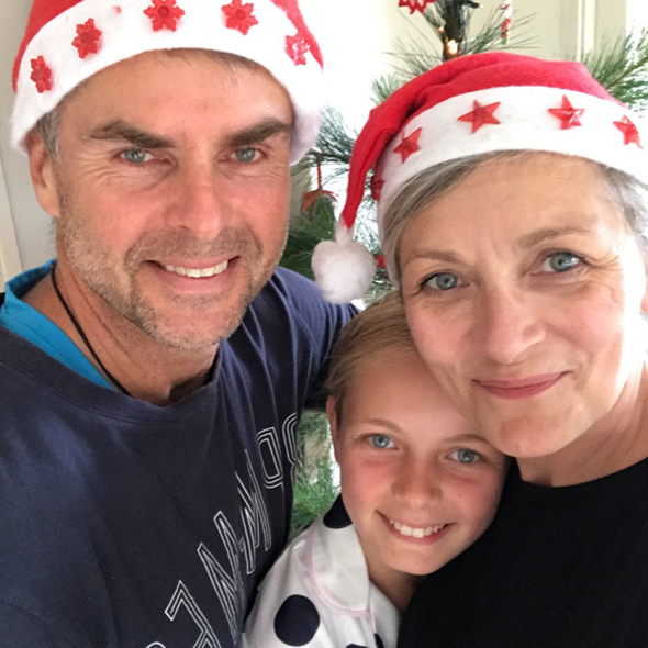 Vit eru ein samanførd familja. Eg eigi trý børn, og maðurin eigur ein son, og so hava vit eina dóttur saman. Jólini eru broytt ígjøgnum árini, men nú eru tey fýra eldru blivin vaksin, sum ger alt eitt sindur lættari. Tey seinastu árini hava vit hildið jól í summarhúsinum hjá okkum, sum er á Kawau Island, ein oyggj, ið liggur nakað norðan fyri Auckland. Vit halda jól fyrsta jóladag, sum byrjar tíðliga, tí yngsta barnið er bert 11 ár. Hon er ógvuliga spent og vaknar í lýsingini. Hini fýra vaksnu eru altíð við og gleðast saman við henni, sjálvt um tey onki høvdu havt ímóti at sloppið at sovið eitt sindur longur.