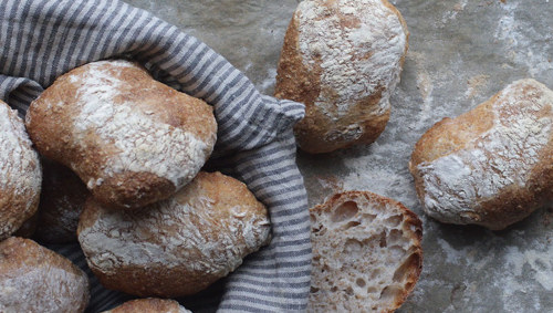 Eftir fýra-fimm dagar stoytir tá 3/4 av súrdeigginum burtur og frískar súrdeiggi. upp við at geva tí 2,5 dl av vatni, 75 g av grahamsmjøli og 75 g av hveitimjøli. Lat súrdeiggið standa á køksborðinum, til tað byrjar at gera bløðrur og týðiliga hevur gingið – nú er taá klárt at baka við.