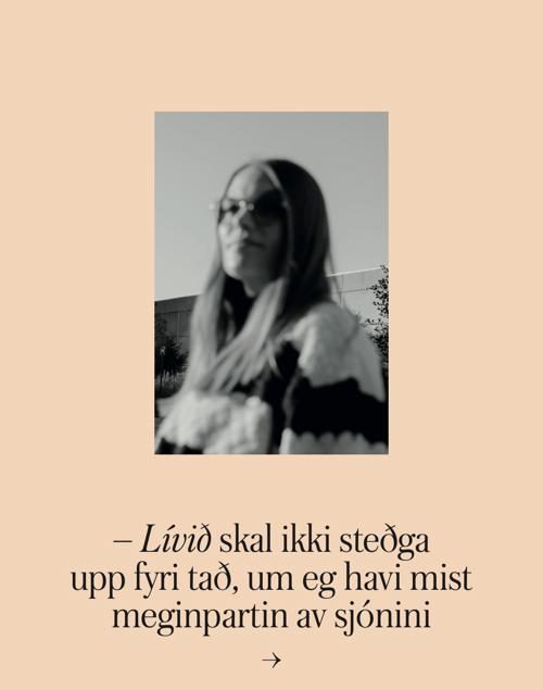 Í blaðnum er eisini ein serliga rørandi samrøða við Britt Birgitardóttir, ið hevur eina eygnasjúku, ið ger, at hon missir sjónina stigvíst. Greinin gevur innlit í persónligar avbjóðingar og stríðið um at varðveita lívsgóðskuna, hóast stóru broytingarnar.